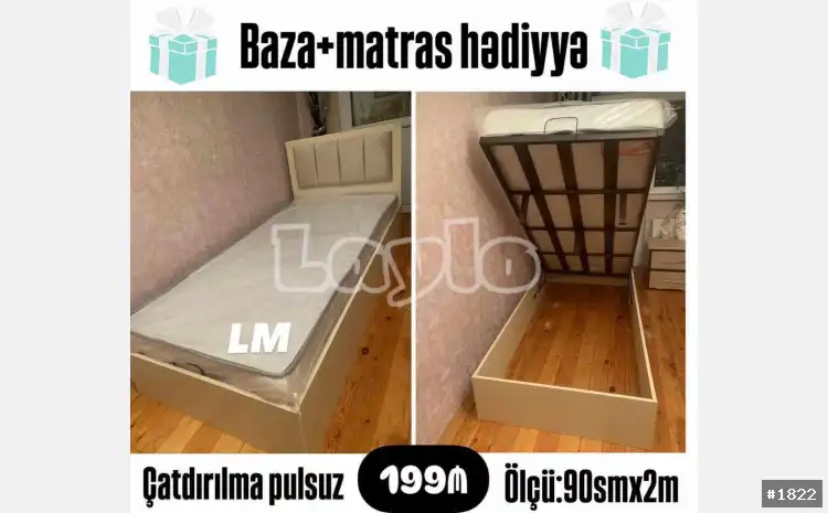 *Tək bazalı çarpayı*???? _*SİFARİŞLƏ VƏ YENİ*_ *Qiymət : 199₼* Ölçü : *90smx2m* ________________________________ Rəng seçimi mümkündür. Material : 18'lik ???? *Təhvil ən qısa zamanda????* *Çatdırılma və quraşdırılma pulsuz‼️