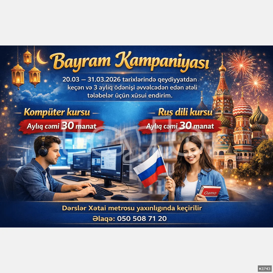 20.03 – 31.03.2026 tarixlərində qeydiyyatdan keçən və 3 aylıq ödənişi əvvəlcədən edən tələbələr üçün xüsusi endirim.