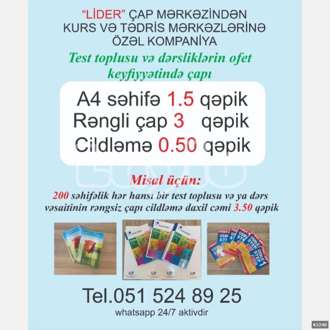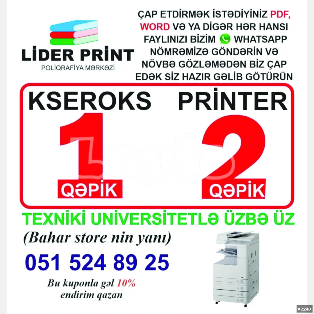 Cap etmek istediyiniz kitabinizin PDF fayli bizim whatsapp nomremize gonderin biz cap edek siz gelib vaxt itirmeden hazir mehsulun bizden tehvil alin.