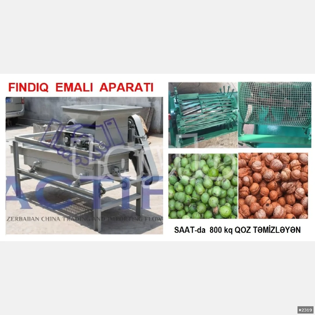 ● QOZ yaşıl qabığını təmizləyən aparat. 400-500 kq/saatda. 220V. Türkiyə istehsalı. Qiyməti: 3.300 ₼.