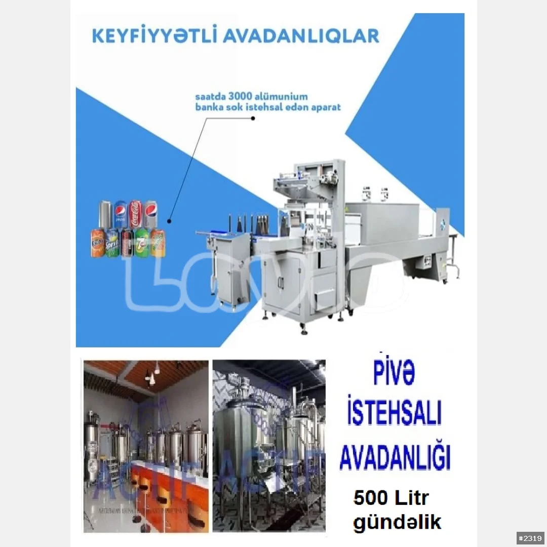 ● PİVƏ istehsalı avadanlığı. Gündəlik istehsal gücü 500 Litr. Bu set gündəlik restoranlarda istifadəyə nəzərdə tutulub. Qiyməti: 127.500 ₼. İstehsal həcminə və istifadə istiqamətlərinə görə qiymətlər dəyişir. İstədiyiniz parametrlərdə sifariş