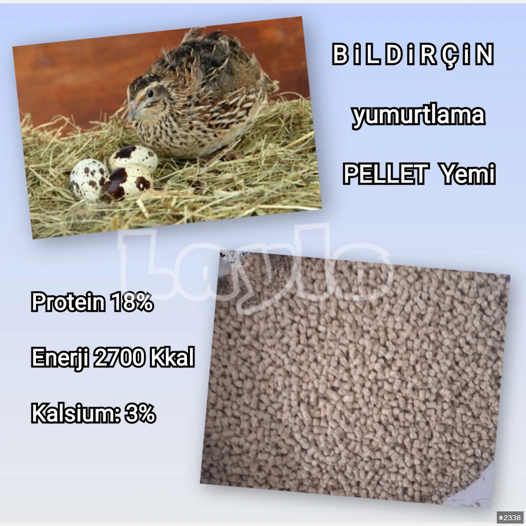 Bildirçin Yumurta PELLET Yemi. Yemin tərkibindəki kalsium və D vitamini yumurta qabığının möhkəm olmasını təmin edir. Yumurta sarısı rəngindəki pegmentasiya artımını dəstəkləyir. Mineral və amin turşuları, yağlı toxumlar və jmıxı, taxıl məhsulları, nişasta, kalsium, dikalsium fosfat, duz, enzimlər, kiflənmə əleyhinə antioksidantlardan hazırlanır. Protein 18%. Enerji 2700 Kkal. Kalsium: 3%. Çatdırılma PULSUZ Kisə ilə = 50 ₼.