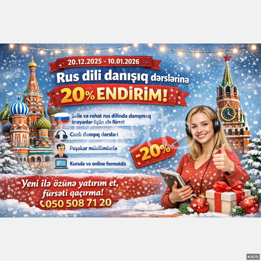 20.12.2025 tarixindən 10.01.2026 tarixinə kimi Rus dili danışıq dərslərinə 20 faiz endirim