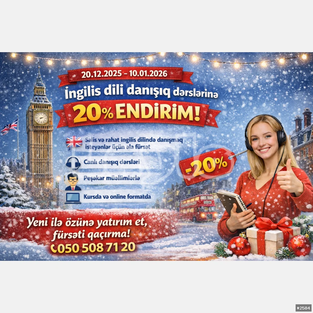 20.12.2025 tarixindən 10.01.2026 tarixinə kimi İngilis dili danışıq dərslərinə 20 faiz endirim