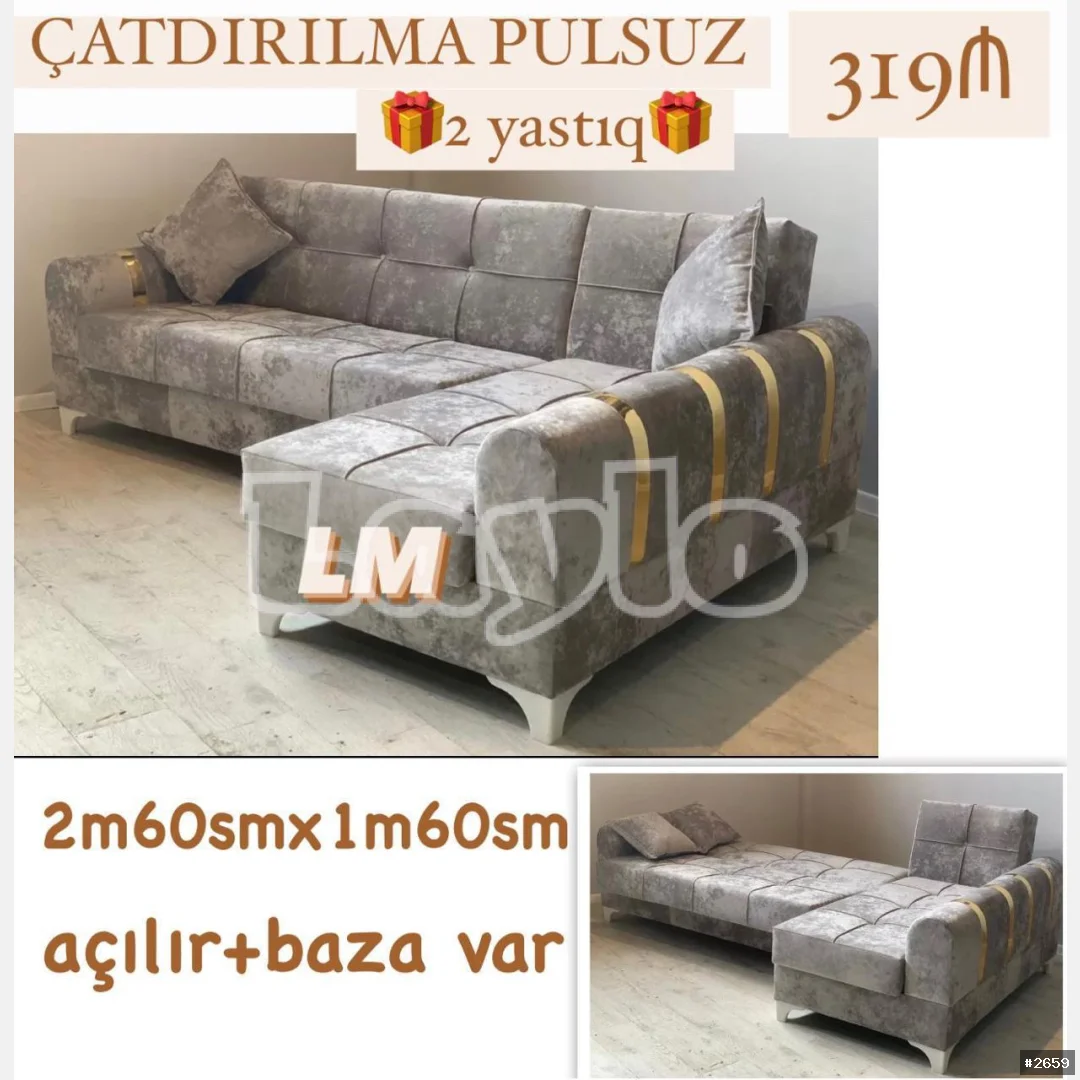 Künc divanlar. Yeni və sifarişlə Qiymət : *319₼* Ölçü: *2m60smx1m60sm* Rəng seçimi sərbəst. *Kitab kimi açılan və bazalı* 2 ədəd yastıqça hədiyyə